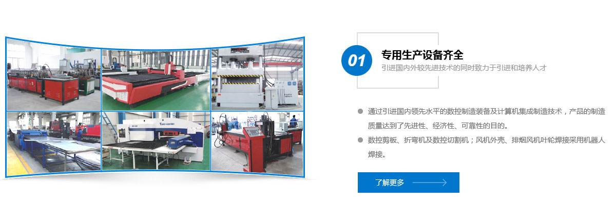 公司在吸取歐美知名風機廠商技術的基礎上,采用先進的CAD軟件技術,設計開發了新產品。為提高產品競爭力,企業建立了采購、生產、檢驗、銷售和售后服務全過程的質量保證體系、現代化的廠房、優秀的員工隊伍、精良的工藝生產設備、完善的檢測手段 ...